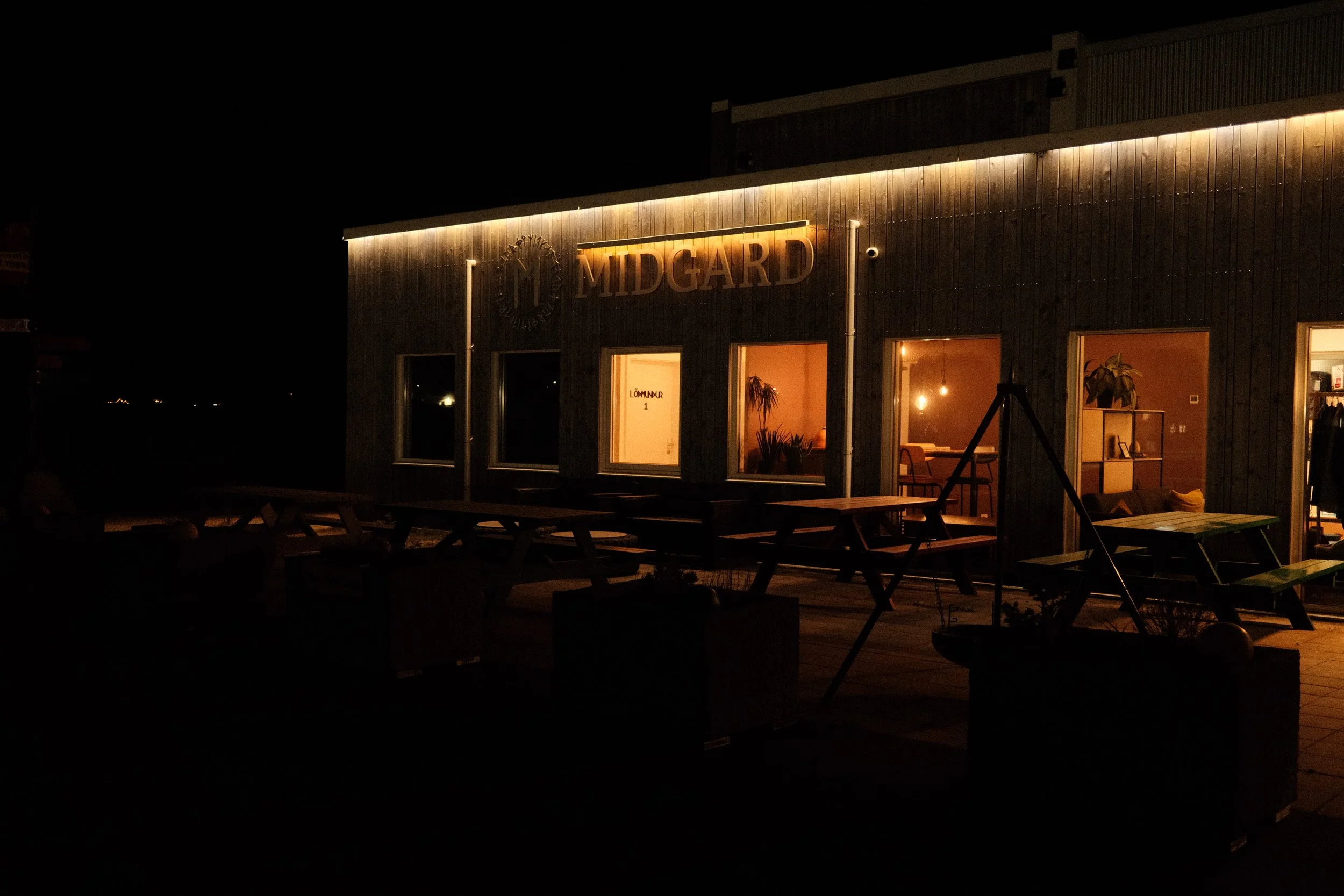 Het is ondertussen donker als we aankomen bij het Midgard hotel, helemaal aan het einde van het dorp, aan het einde van een doodlopend wegje. We parkeren onze Mazda tussen de excursiebusjes en slepen de valiezen naar binnen (slepen is het juiste woord hier). Het Midgard hotel/hostel is eigenlijk veel leuker dan Booking.com op het eerste zicht deed lijken (een waar talent van booking). De lobby is het toonbeeld van hoe een hostel eruit dient te zien: bankjes gemaakt van geschilderde paletten, kussens in alle kleuren van de regenboog, strandstoelen die aan het plafond hangen en nu dienst doen als schommel met daarnaast een gezellig restaurant. Twee jonge vrouwen ontvangen ons vriendelijk en geven ons zelfs een rondleiding door de hostel (ze zijn duidelijk trots op hun rooftop hottub en sauna). Voor ons is het evenwel tijd om gewoon te crashen in ons bed. Na nog even onze zakjes kampeervoeding te hebben opgesmuld, is het ein-de-lijk tijd om te slapen (ik heb het gevoel dat ik dat al weken niet meer heb gedaan).